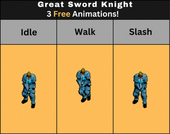 The Idle, Walk, and Slash animations are FREE! That's enough to get any project started. For those looking to add more to their games, the premium pack comes with over 40 animations!