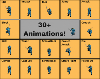- 8x Attack Animations (Jump attacks, slide attacks, combos, etc)